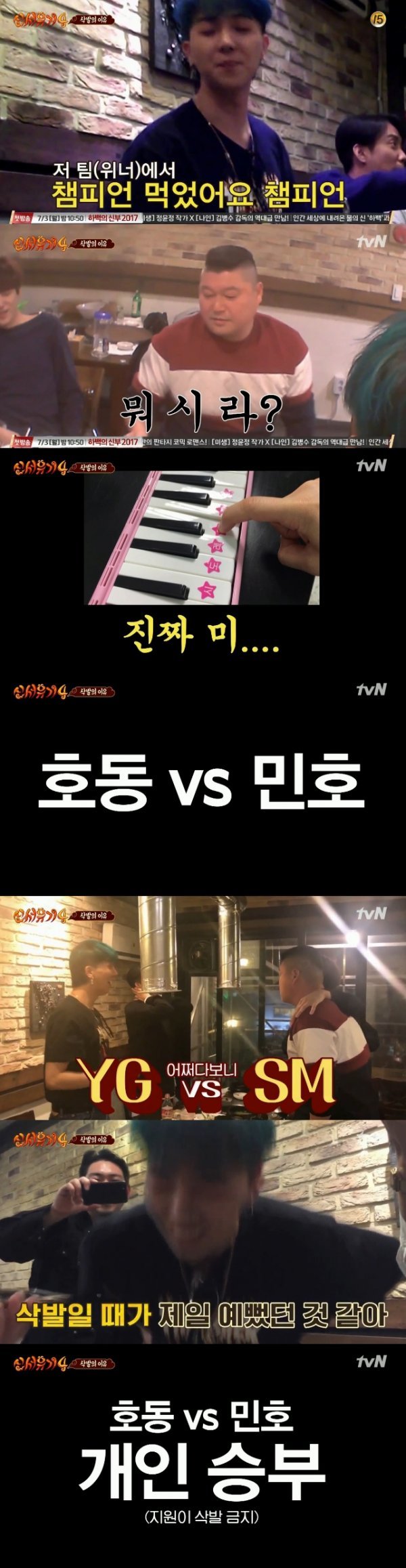 이렇게 예고된 강호동과 송민호의 탁구 대결. 특히 송민호의 삭발 과정에는 양현석 YG엔터테인먼트 대표의 허락이 있었다. 양현석과의 전화통화에서 “민호는 삭발할 때가 제일 예뻤다”고 이야기했다.