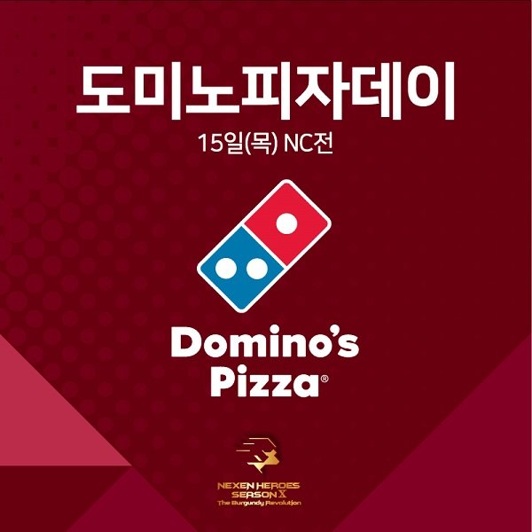 프로야구 넥센히어로즈가 15일(목) 오후 6시30분 고척 스카이돔에서 펼쳐지는 NC다이노스와의 경기에 ‘도미노피자 데이’ 이벤트를 실시한다.