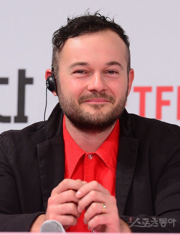 14일 서울 광화문 포시즌스 호텔에서 영화 ‘옥자’ 기자회견이 열렸다. 다니엘 헨셜이 카메라를 향해 미소를 짓고 있다.