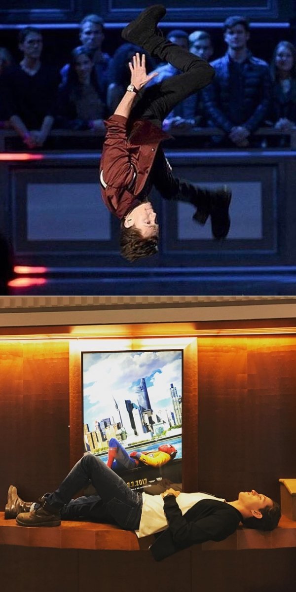 마블 최강 비글 히어로 ‘스파이더맨’으로 ‘캡틴 아메리카: 시빌 워’(2016)에서 첫 선을 보이며 전세계의 관심을 한 몸에 받은 톰 홀랜드는 2008년 12살의 나이에 뮤지컬 ‘빌리 엘리어트’로 데뷔한 아역배우 출신으로서 노래와 춤, 발레 등 다방면에 소질 있는 ‘준비된 스파이더맨’으로 알려졌었다. 유명세를 타며 연기는 물론 다양한 분야에서 끼와 매력을 발산하고 있는 톰 홀랜드는 이를 증명하듯 최근 미국에서 가장 핫한 프로그램인 ‘립싱크 배틀’에 출연해 ‘Singing in the Rain’과 리한나 히트곡 ‘Umbrella’의 퍼포먼스를 패러디하면서 네티즌들의 뜨거운 호응을 이끌어낸 바 있다. 당시 프로그램에는 ‘스파이더맨: 홈커밍’에서 ‘미쉘’ 역을 연기한 젠다야 콜맨이 함께 출연했으며 그녀 또한 톰 홀랜드의 파워풀한 퍼포먼스에 놀라움을 감추지 못하는 모습을 보였다.