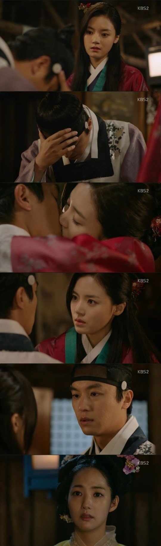 KBS 2TV 수목드라마 '7일의 왕비' 15일 방송에서는 윤명혜(고보결 분)가 이역(연우진 분)에게 입맞춤을 하는 모습이 그려졌다.