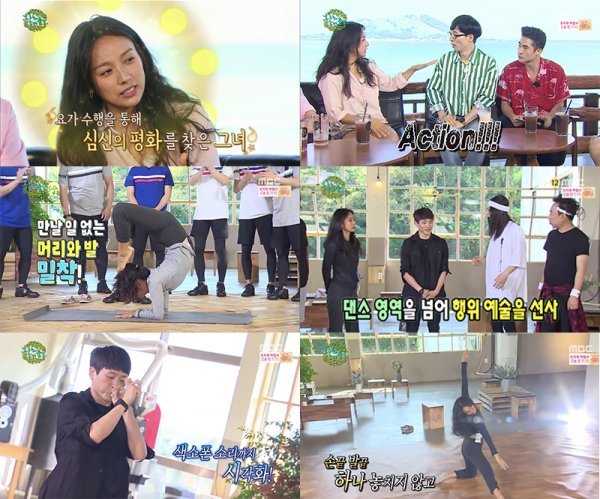 지난 17일 방송된 MBC \'무한도전\'에서는 이효리가 제주도를 찾아 온 멤버들에게 요가를 가르치고, 김설진 안무가를 초빙해 함께 현대무용을 배우는 모습이 그려졌다.