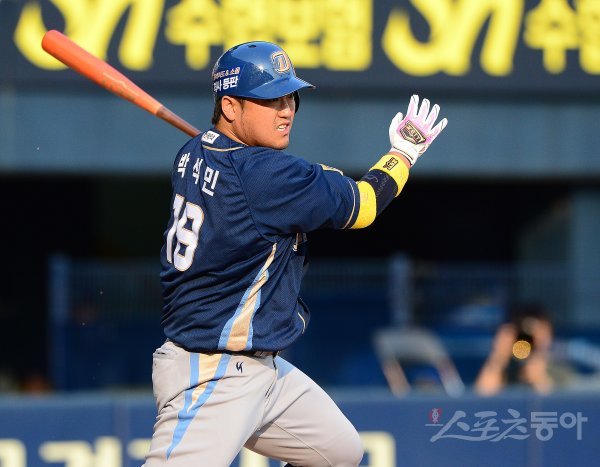 18일 서울 잠실야구장에서 ‘2017 타이어뱅크 KBO 리그’ 두산 베어스와 NC 다이노스의 경기가 열렸다. 3회초 2사 2루에서 NC 박석민이 적시 2루타를 치고 있다.