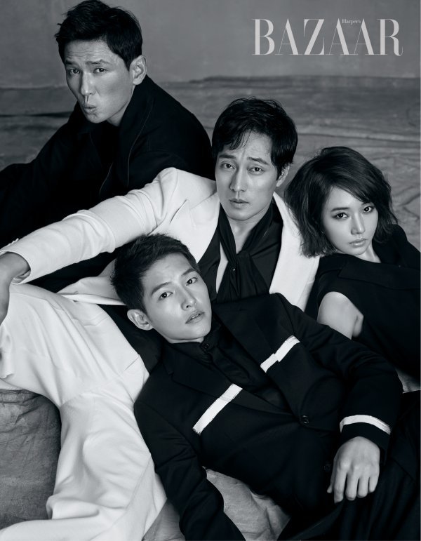 2017년 최고 기대작으로 손꼽히고 있는 ‘군함도’를 통해 첫 호흡을 맞춘 대한민국 대표 배우 황정민, 소지섭, 송중기, 이정현이 바자 7월호 표지를 장식, 영화 속 모습과 상반된 매력으로 시선을 사로잡는다. 모노톤의 시크하고 세련된 스타일링과 배우들의 깊이 있는 눈빛, 완벽한 케미스트리까지 삼박자가 완벽하게 어우러져 더욱 매력적인 화보로 탄생했다. 악단장 ‘이강옥’ 역의 황정민, 경성 최고의 주먹 ‘최칠성’ 역의 소지섭, OSS 소속 광복군 ‘박무영’ 역의 송중기, 강인한 조선 여인 ‘말년’으로 분한 이정현의 단체 화보는 각자의 매력을 한껏 살린 스타일링은 물론 네 배우의 강한 존재감이 하나로 어우러지며 ‘군함도’ 속 연기 시너지에 대한 기대를 높인다.