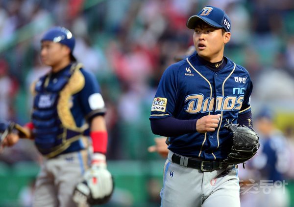20일 인천 SK행복드림구장에서 ‘2017 타이어뱅크 KBO리그’ SK 와이번스와 NC 다이노스의 경기가 열렸다. 3회말 무사 2루에서 SK 최정에게 몸에 맞는 볼을 허용한 NC 선발 이형범이 교체되고 있다.
