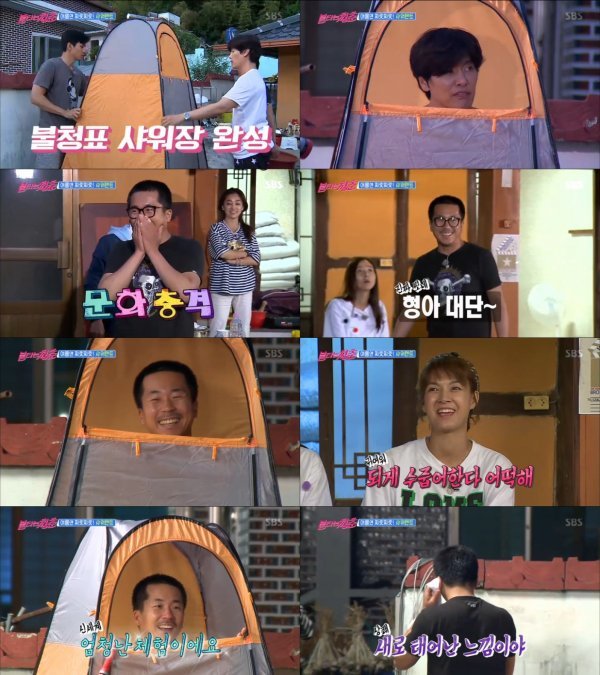 20일 방송된 SBS \'불타는 청춘\'에서는 간이 샤워장에 도전하는 양익준의 모습이 그려졌다.