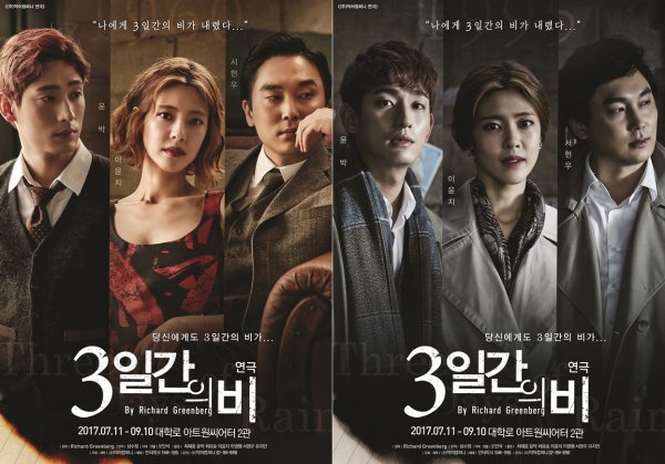 이윤지-윤박 등의 출연으로 화제를 모으며 오는 7월 11일, 국내 초연을 앞둔 연극 ‘3일간의비-원제 Three days of Rain’가 세 남녀의 인물 관계를 담은 1인 2역 캐릭터 포스터를 공개했다.