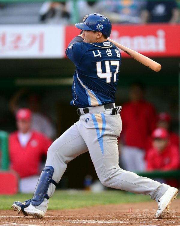21일 인천 SK행복드림구장에서 ‘2017 타이어뱅크 KBO리그’ SK 와이번스와 NC 다이노스의 경기가 열렸다. 3회초 1사 만루에서 NC 나성범이 1타점 적시타를 날리고 있다.