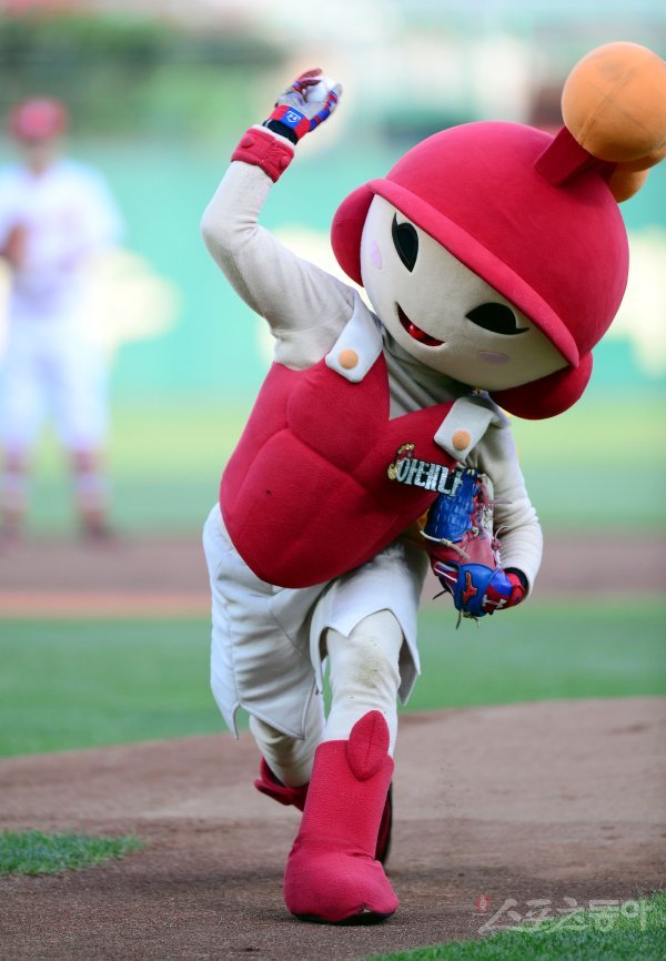21일 인천 SK행복드림구장에서 ‘2017 타이어뱅크 KBO리그’ SK 와이번스와 NC 다이노스의 경기가 열렸다. SK 마스코트 아테나가 승리 기원 시구를 던지고 있다.