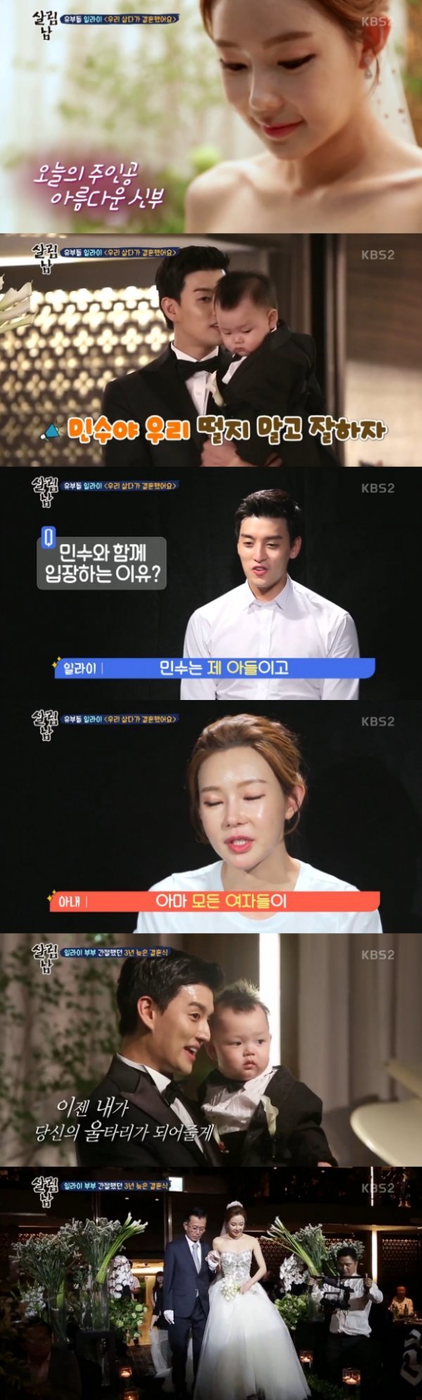21일 방송된 KBS 2TV ‘살림하는 남자들 시즌2’(이하 ‘살림남’)에서는 결혼 3년 만에 결혼식을 올리는 일라이의 모습과 아들 민수의 돌잔치 현장이 공개됐다. 2014년 5월 혼인신고를 하고 그 이후 아들 민수를 낳은 일라이 부부가 지난 3일 결혼식과 함께 아이의 돌잔치를 하며 겹경사를 맞았다.