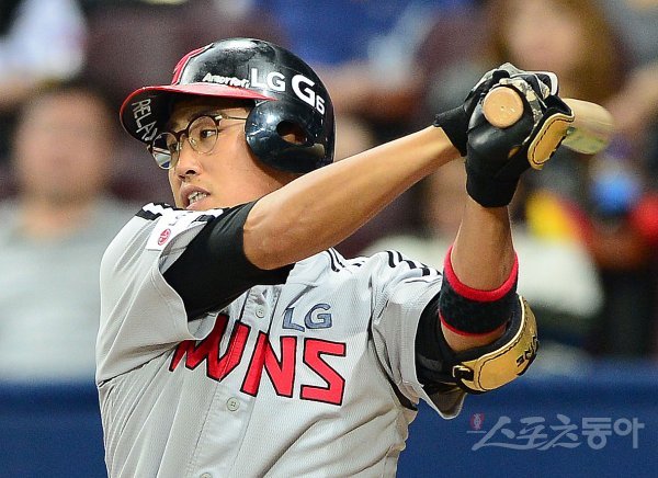 25일 서울 고척스카이돔에서 ‘2017 타이어뱅크 KBO 리그’ 넥센히어로즈와 LG트윈스의 경기가 열렸다. 6회초 1사 LG 채은성이 안타를 치고 있다.