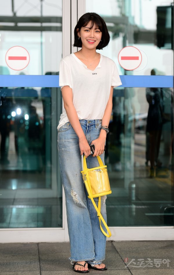 소녀시대 수영이 26일 인천국제공항을 통해 해외일정 차 괌으로 출국하고 있다. 수영이 포즈를 취하고 있다.