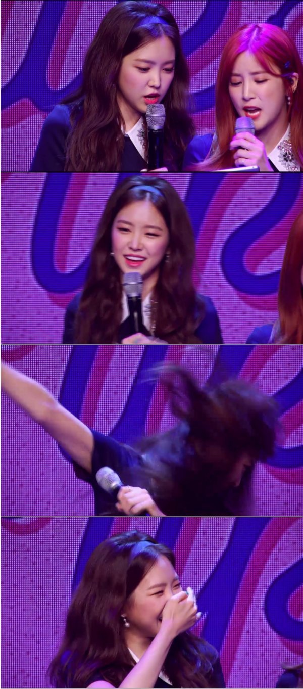 그룹 에이핑크(박초롱, 윤보미, 정은지, 손나은, 김남주, 오하영) 손나은이 댑댄스로 기분을 드러냈다.