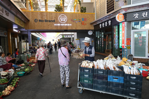 이마트는 경상북도 구미시 선산읍 선산봉황시장에 청년상인들로 주축이 된 ‘청년몰’과 함께 ‘노브랜드 청년 상생스토어’를 27일 오픈했다. 시장 A동 2층 1650㎡(약 500평)중 420㎡(약 125평)을 노브랜드 상생스토어로 꾸민다. 또 17명의 청년상인이 운영하는 청년몰과 함께 ‘어린이 놀이터’, ‘고객쉼터시설’ 등도 들어선다. 상생스토어에선 전통시장 주력 상품인 신선식품은 판매하지 않고, 가공식품과 생활용품만 판매한다. 상인회가 시장의 약점으로 지적됐던 수산물 판매를 요청해 생선과 조개 등 일부 수산물은 구비하기로 했다.