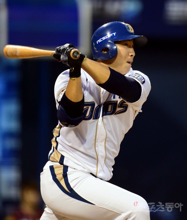 27일 창원 마산야구장에서 ‘2017 타이어뱅크 KBO리그’ NC 다이노스와 넥센 히어로즈의 경기가 열렸다. 3회말 1사 2루에서 NC 나성범이 1타점 2루타를 날리고 있다.