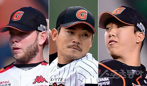 롯데 애디튼-노경은-김유영(왼쪽부터). 스포츠동아DB