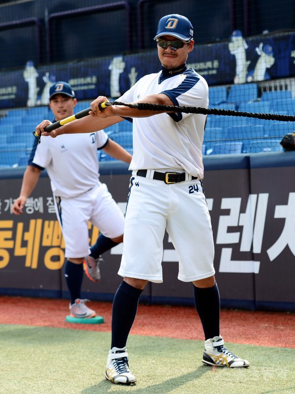 28일 창원 마산야구장에서 ‘2017 타이어뱅크 KBO리그’ NC 다이노스와 넥센 히어로즈의 경기가 열린다. 경기전 NC 조영훈이 훈련을 펼치고 있다.