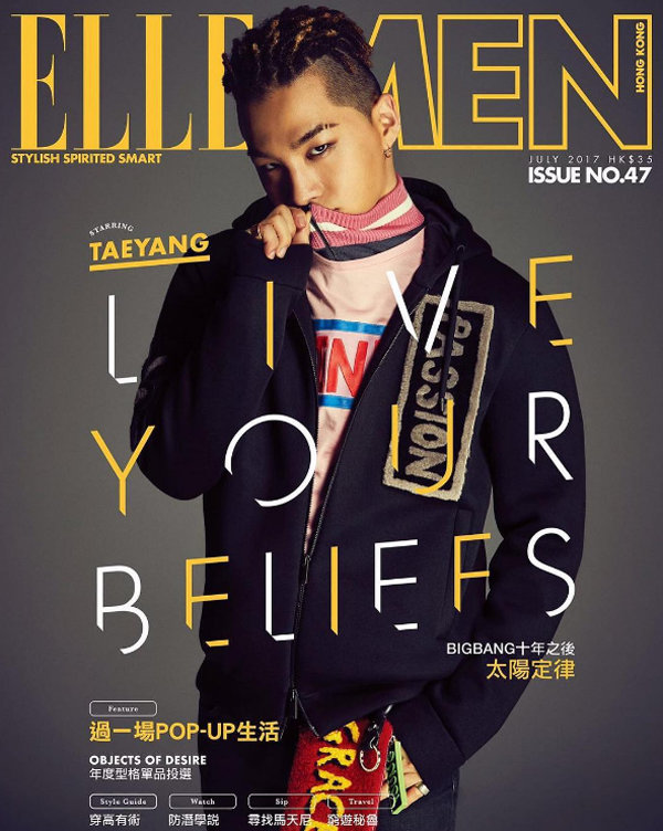 태양은 28일 인스타그램 계정에 홍콩판 엘르맨 7월호 커버 사진을 게재했다. 공개된 사진에는 시크한 표정으로 압도적인 카리스마를 내뿜는 태양의 모습이 담겨 있다. 이는 홍콩판엘르맨 커버 화보로 태양의 현지 인기를 짐작하게 한다.