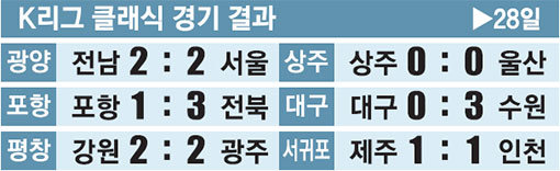 자신이 틀 만든 포항은 1-3 전북에 완패