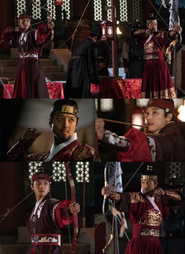 사진은 오늘(29일) 방송되는 10회 한 장면을 포착한 것이다. 이역, 이융 형제는 어둠이 짙게 깔린 활터에 나란히 서서 활시위를 당기고 있다. 과녁을 조준하는 두 사람의 눈빛은 날카롭고 형형하게 빛난다. 웃음기 없는 표정은 두 사람이 느끼는 서로에 대한 경계심을 보여주듯 의미심장해 더욱 눈길을 끈다.