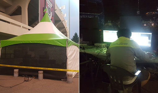 한국프로축구연맹은 28일 전국 6개 구장에서 열린 K리그 클래식 17라운드 전 경기에서 VAR 시뮬레이션을 실시했다. 28일 상주상무-울산현대전이 벌어진 상주시민운동장 외곽에 VAR실(왼쪽 사진)이 중계방송차량 앞에 설치됐다. VAR실 내부에서 오퍼레이터가 화면을 체크하고 있다. 연맹은 클래식 18라운드부터 VAR을 심판 판정에 반영한다. 상주 | 최용석 기자 gtyong@donga.com