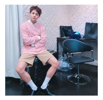 사진 속 양요섭은 핑크색 상의에 반바지를 매치, 캐리어 위에 팔짱을 끼고 앉아있는 모습. 동안 외모와 개구장이 같이 포즈로 매력을 발산했다.