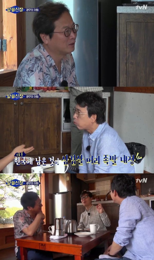 경주에서 아침을 맞이한 멤버들은 베이컨을 먹었고 김영하는 "우리나라 사람들은 왜 삼겹살을 좋아하나"라는 질문을 던졌다.