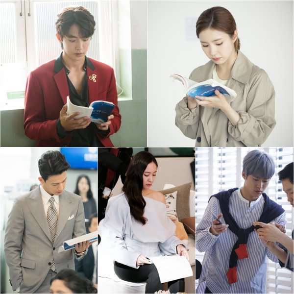 공개된 스틸 속 신세경-남주혁-임주환-정수정-공명은 대본과 한 몸이 된 듯 사랑에 빠진 모습이다. 이들은 쉬는 시간에도 촬영장에 없으면 안 될 필수템처럼 대본을 꼭 옆에 두고 있는데 이러한 배우들의 대본앓이 모습이 보는 이들을 미소짓게 만든다.