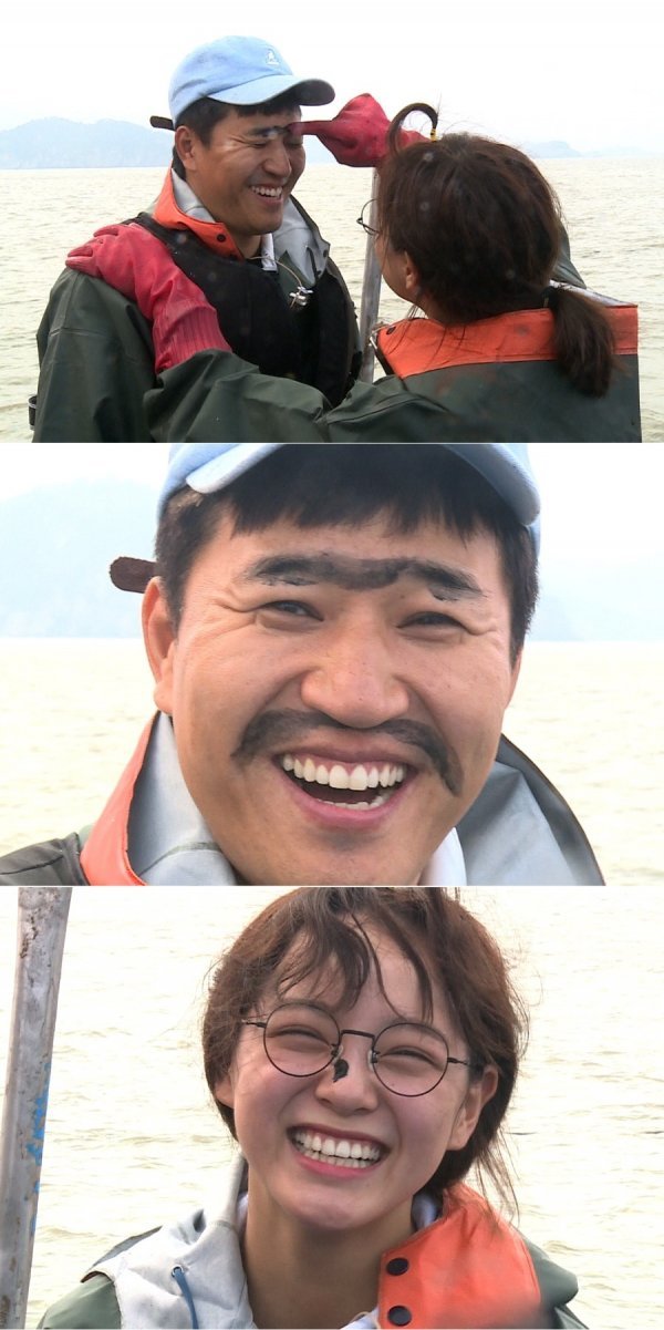 이날 멤버들은 여름 제철을 맞은 병어 조업에 나선다. 병어 잡이 배에 오른 김종민과 세정은 장시간의 힘든 조업에도 막간을 이용해 그물에 잡힌 오징어 먹물을 서로의 얼굴에 찍어주며 ‘비글 남매’의 모습을 보였다.