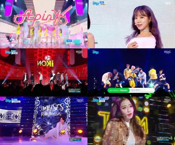 이날 '음악중심'에선 에이핑크, 업텐션, 앤씨아가 컴백 무대를 선보였다. 에이핑크는 '콕콕' 'FIVE'로 원조 청순돌다운 매력을 뽐냈고 업텐션은 'Everything''시작해'로 완벽한 퍼포먼스를 소화, 앤씨아는 '읽어주세요'로 감성을 전했다.