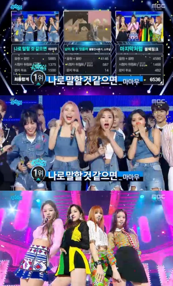 1일 '음악중심'에선 마마무 '나로 말할 것 같으면' 블랙핑크 '마지막처럼' 볼빨간 사춘기x스무살 '남이 될수 있을까'가 1위 경합을 벌였다.