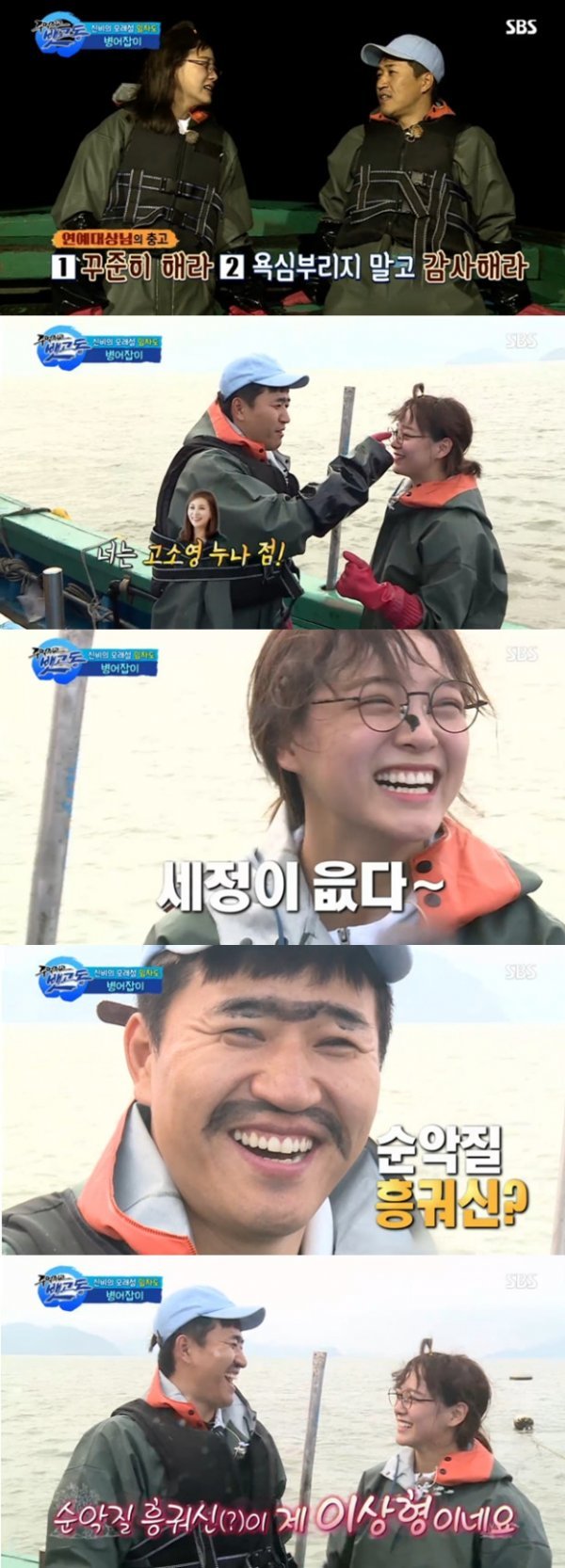 1일 방송된 SBS \'주먹쥐고 뱃고동\' 임자도 편에서는 병어조업에 나선 김종민과 세정이 다른 듯 닮은 남매 케미를 보이며 시청자들의 시선을 끌었다.