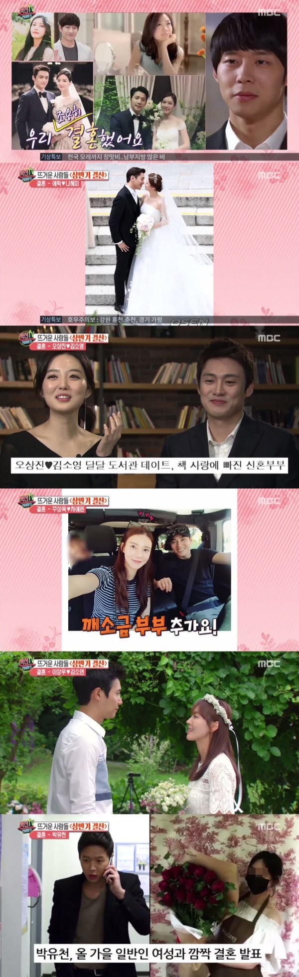 또한 박정현의 결혼소식과 오상진, 김소영 아나운서의 결혼 소식이 함께 전해졌다. 뿐만 아니라 주상욱, 차예련 부부 그리고 김소연, 이상우 부부와 박유천의 결혼소식까지 전해 눈길을 끌었다.