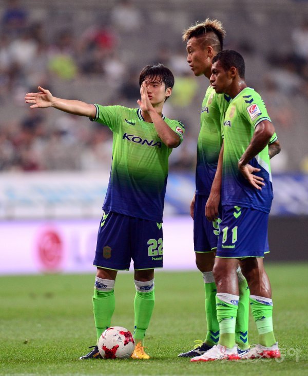 5일 서울월드컵경기장에서 열린 ‘KEB 하나은행 K리그 클래식 2017’ 전북현대와 FC서울 경기에서 전북 김진수가 김신욱과 프리킥에 대해 상의하고 있다.