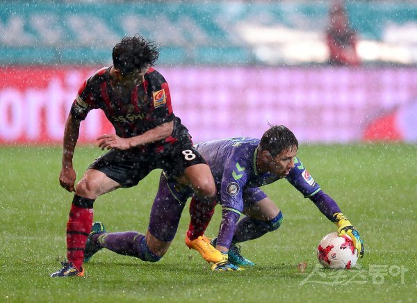 5일 서울월드컵경기장에서 열린 ‘KEB 하나은행 K리그 클래식 2017’ 전북현대와 FC서울 경기에서 전북 골키퍼 홍정남에 서울 이상호에 앞서 볼을 잡아내고 있다.