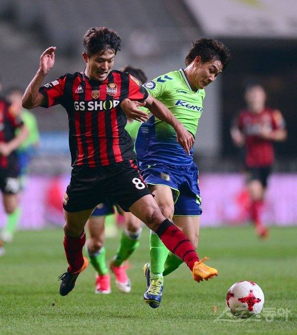 5일 서울월드컵경기장에서 열린 ‘KEB 하나은행 K리그 클래식 2017’ 전북현대와 FC서울 경기에서 서울 이상호와 전북 최철순이 볼다툼을 하고 있다.
