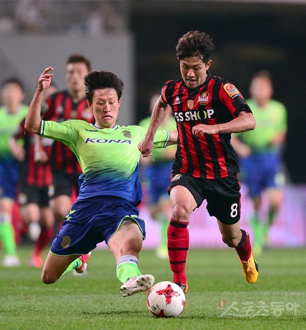 5일 서울월드컵경기장에서 열린 ‘KEB 하나은행 K리그 클래식 2017’ 전북현대와 FC서울 경기에서 서울 이상호가 전북 이재성의 태클을 피해 공격하고 있다.