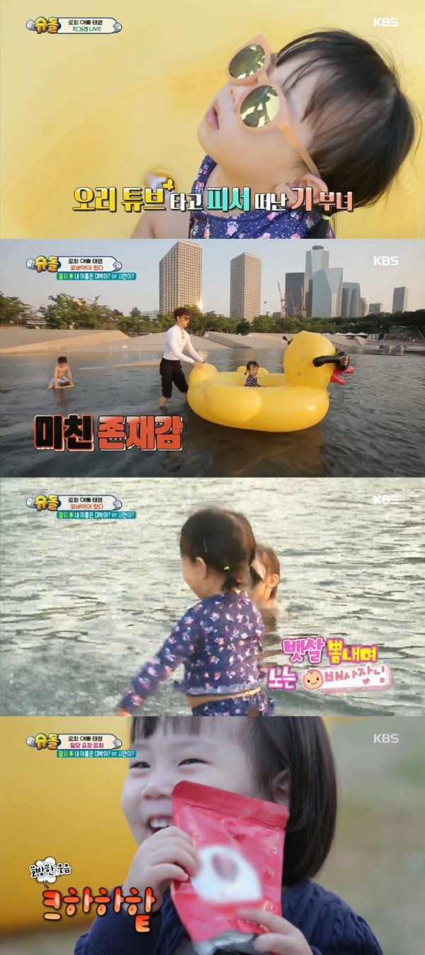 기태영-로희 부녀는 그렇게 중고거래로 구매한 대형튜브를 들고 여의도로 향했다. 로희가 깜찍 뱃살을 뽐내며 물놀이 하는 모습, 시원한 물놀이 후 돗자리에 마주 앉아 치킨을 먹는 모습, 뽀뽀하지 말라며 아빠에게 밀당애교를 펼치는 로희 장면이 분당시청률 14%(닐슨 전국기준)을 기록하며 이날 방송 ‘최고의 1분’을 차지했다.
