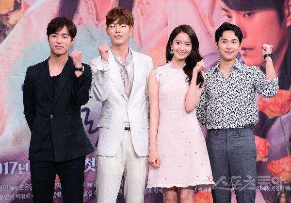 3일 서울 마포구 상암동 MBC 골든마우스홀에서 MBC 새 월화드라마 ‘왕은 사랑한다’ 제작발표회가 열렸다. 주연 배우들이 포토타임을 가지고 있다. 왼쪽부터 배우 오민석, 홍종현, 임윤아, 임시완.