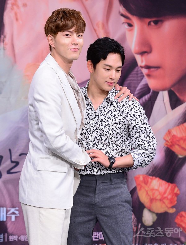 3일 서울 마포구 상암동 MBC 골든마우스홀에서 MBC 새 월화드라마 ‘왕은 사랑한다’ 제작발표회가 열렸다. 배우 홍종현과 임시완(오른쪽)이 포토타임을 가지고 있다.
