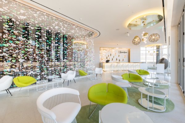 인천 파라다이스 시티의 루프탑 바 옆에 위치한 라운지는 브랜드 상징인 아네모네와 나비, 잠자리를 오브제로 활용하고 페리에 주에의 그린을 사용해 브랜드가 지향하는 자연을 그대로 재현했다.