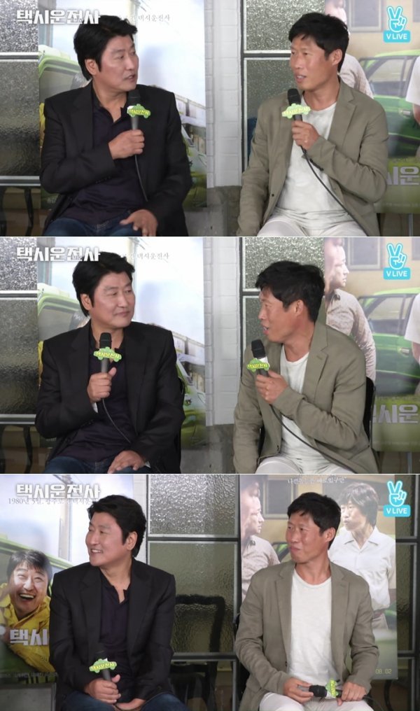 먼저 송강호는 3일 오후 9시 네이버 V앱에서 생방송된 영화 ‘택시 운전사’에서 “유해진과 이렇게 나란히 앉아있는 게 처음”이라고 말했다.