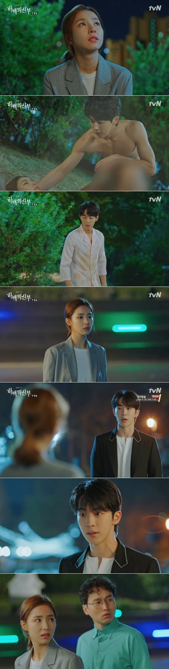 3일 첫방송된 tvN 새 월화드라마 ‘하백의 신부’ 1회에서는 물의 신 하백(남주혁)이 인간세계로 넘어오는 모습이 그려졌다. 이날 하백은 소아(신세경)의 머리 위로 떨어졌다. 머리를 세게 부딪친 소아는 그대로 정신을 잃고 쓰러졌다.