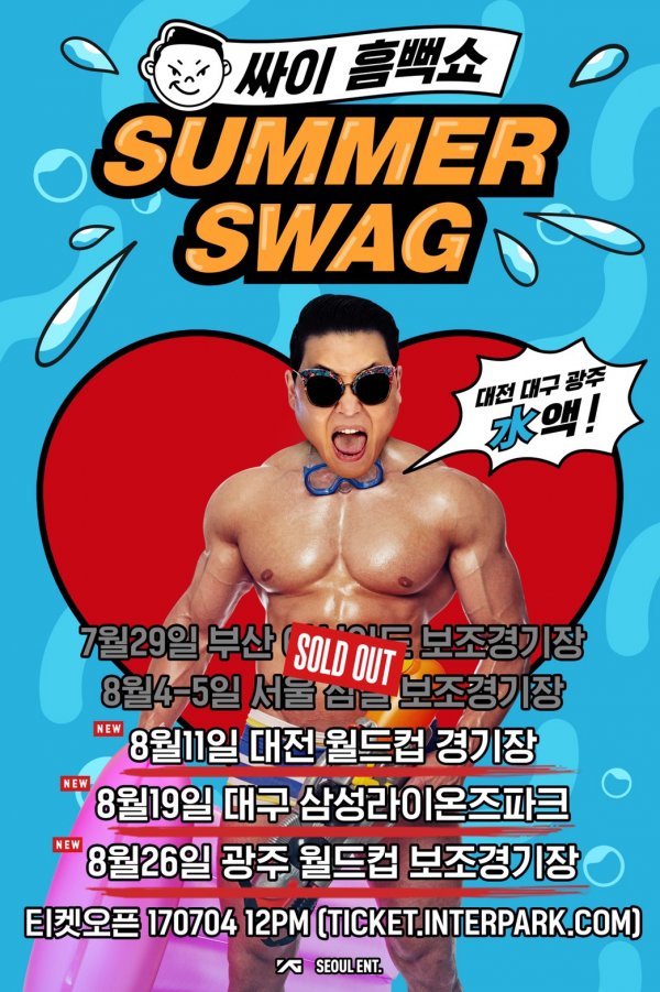 이로써 싸이는 7월 29일 부산 공연을 시작으로 서울, 대전, 대구, 광주까지 총 5개 도시에서 공연을 펼친다.