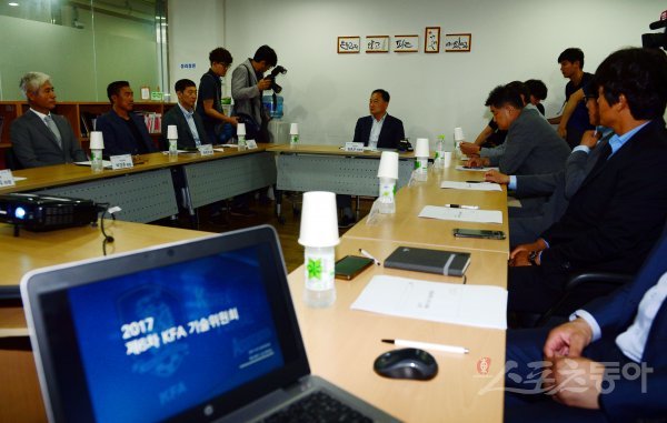 4일 경기도 파주 축구 국가대표팀 트레이닝 센터(NFC)에서 김호곤 신임 기술위원장 주재로 A대표팀 감독 선임건을 포함한 제 6차 기술위원회가 열렸다. 김호곤 기술위원장을 비롯한 8명의 기술위원들이 회의를 하고 있다.