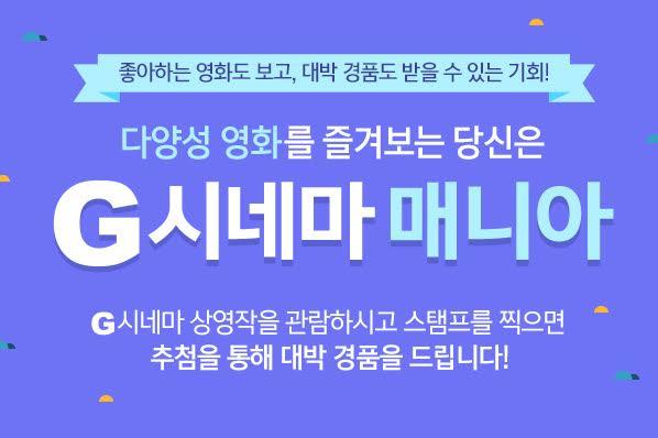 롯데시네마(대표 차원천)가 경기콘텐츠진흥원과 함께 한국 다양성 영화 상영 환경의 개선과 다양성영화 산업의 육성을 위해 손을 잡고 운영 중인 ‘G시네마’가 관객들의 좋은 반응을 얻고 있는 가운데, 다양성 영화를 즐겨보는 관람객을 위한 경품 이벤트인 ‘G시네마 매니아’ 이벤트를 진행한다.