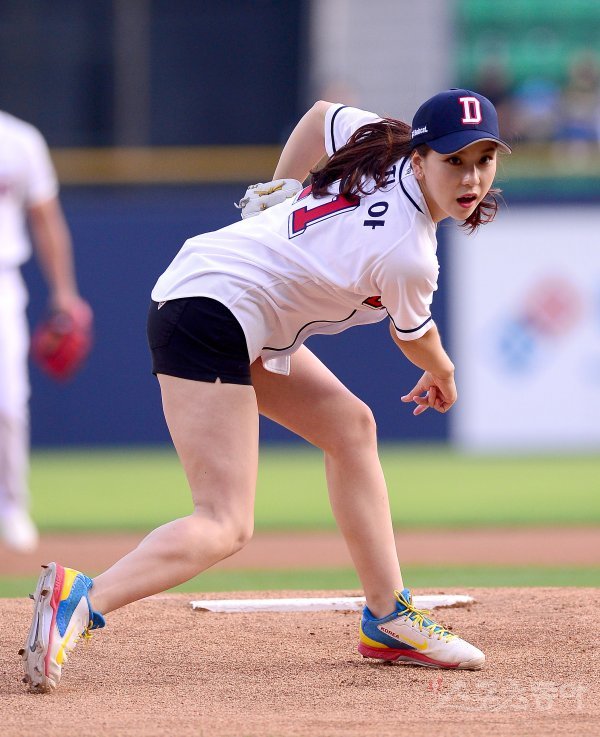 4일 잠실야구장에서 ‘2017 타이어뱅크 KBO 리그’ kt위즈와 두산베어스의 경기가 열렸다. 경기 전 탤런트 박지아가 시구를 하고 있다.