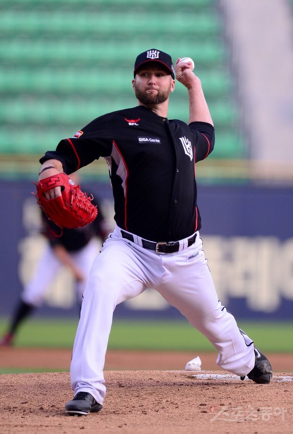 4일 잠실야구장에서 ‘2017 타이어뱅크 KBO 리그’ kt위즈와 두산베어스의 경기가 열렸다. 선발 투수로 등판한 kt 피어밴드가 역투하고 있다.