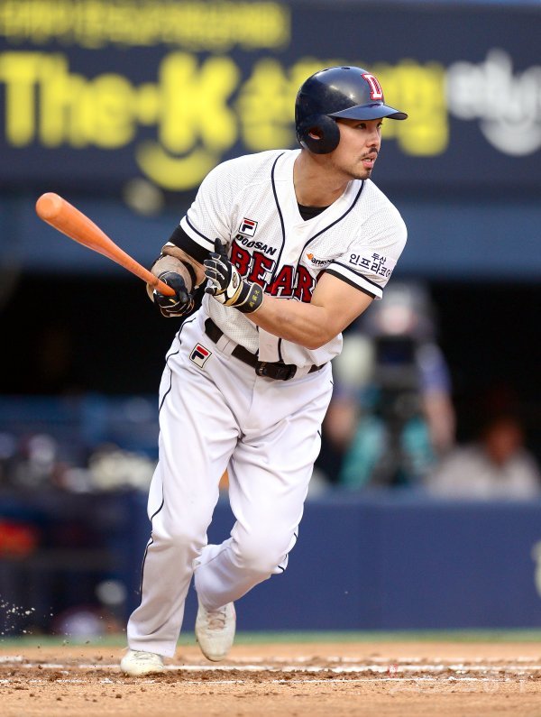 4일 잠실야구장에서 ‘2017 타이어뱅크 KBO 리그’ kt위즈와 두산베어스의 경기가 열렸다. 2회말 2사 1,2루 두산 오재원이 선제 1타점 우전 안타를 치고 있다.