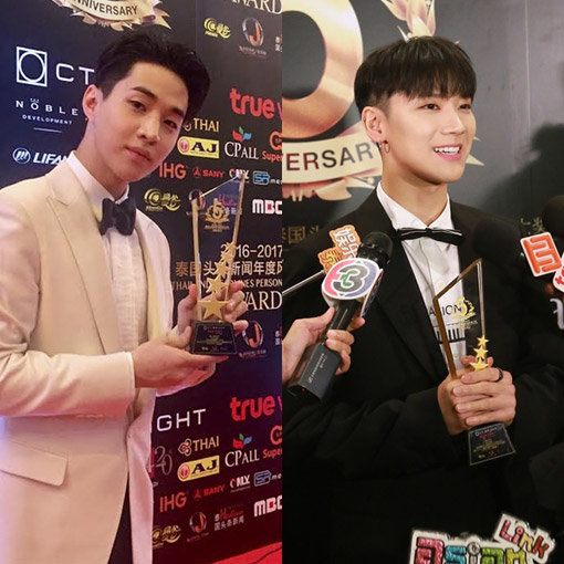 이들은 3일(현지시간) 방콕 그랜드 앤 방콕 컨벤션센터 엣 센트럴월드에서 열린 ‘2016-2017 태국 헤드라인뉴스 연도풍운인물’ 시상식에서 각각 ‘연도풍운인물 최고 영향력상’과 문화오락 부문 ‘연도풍운 최고 인기 인물상’을 수상했다.